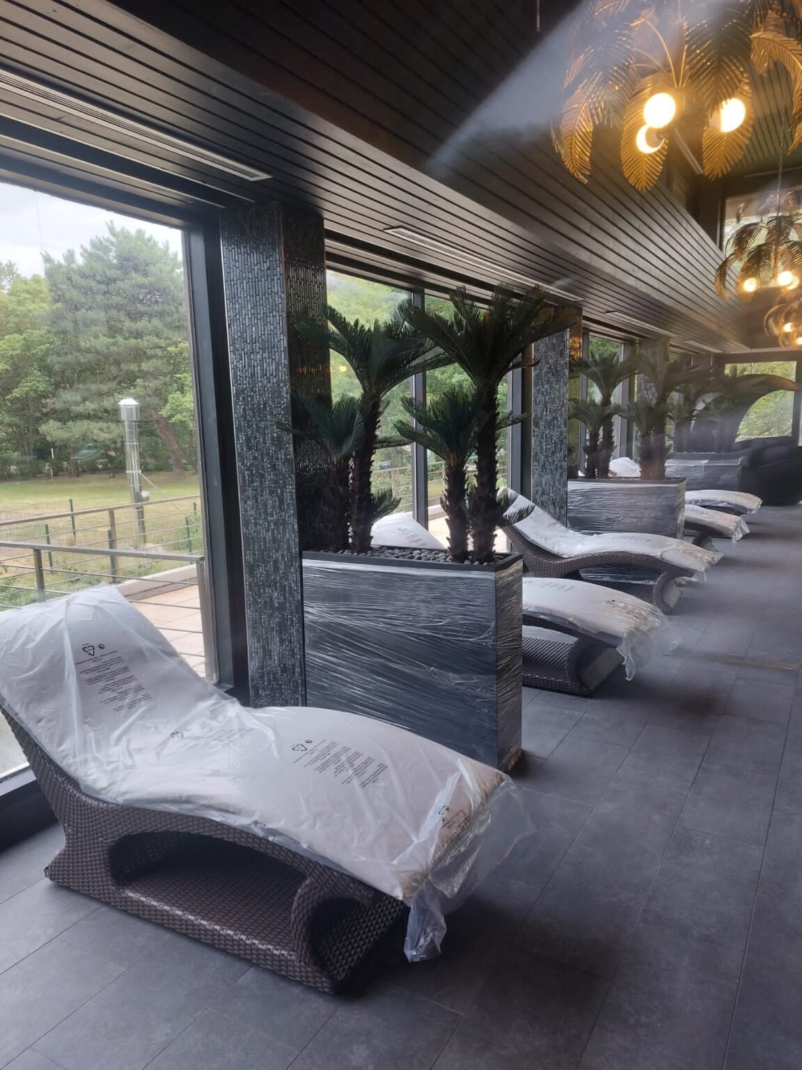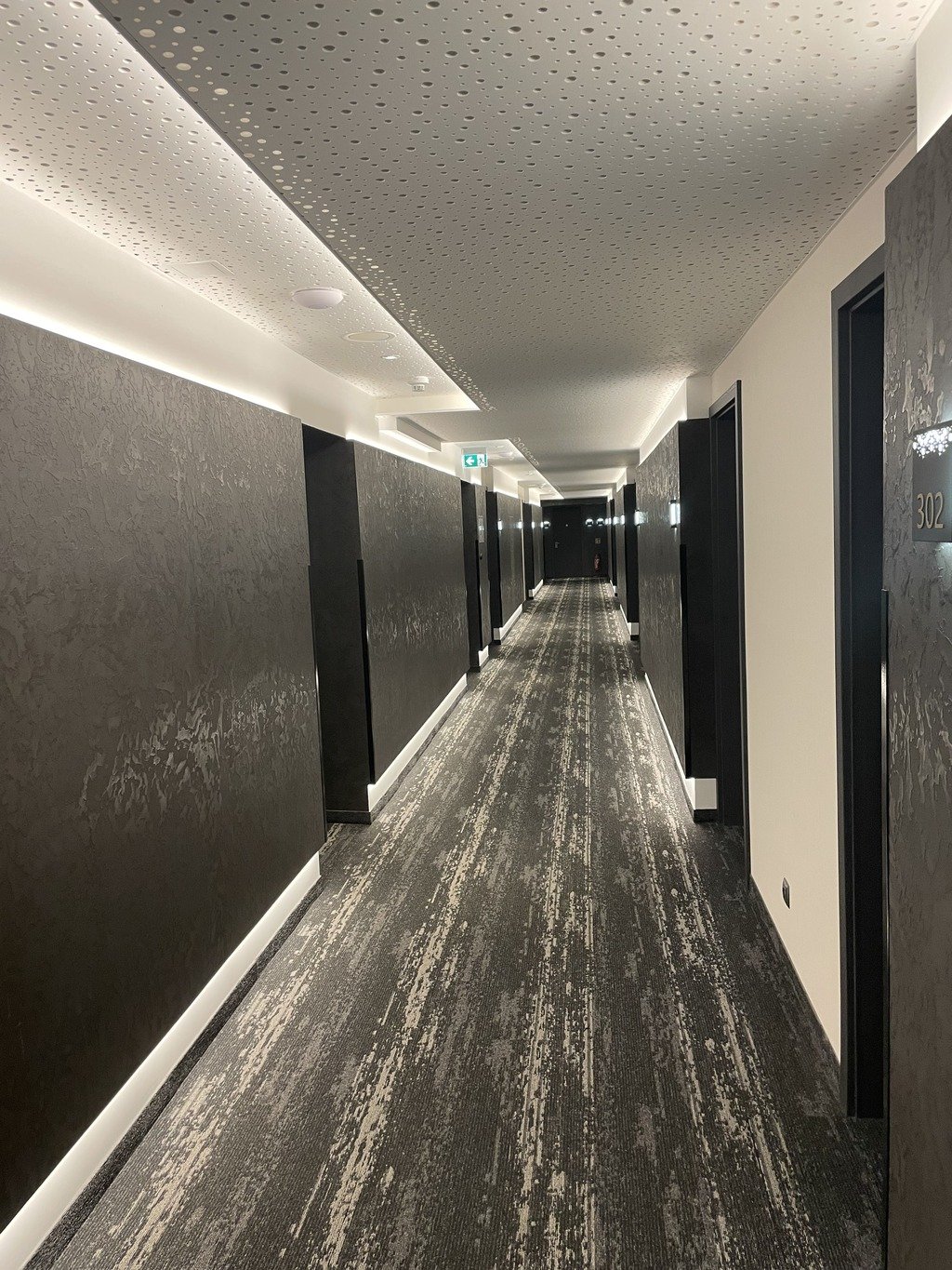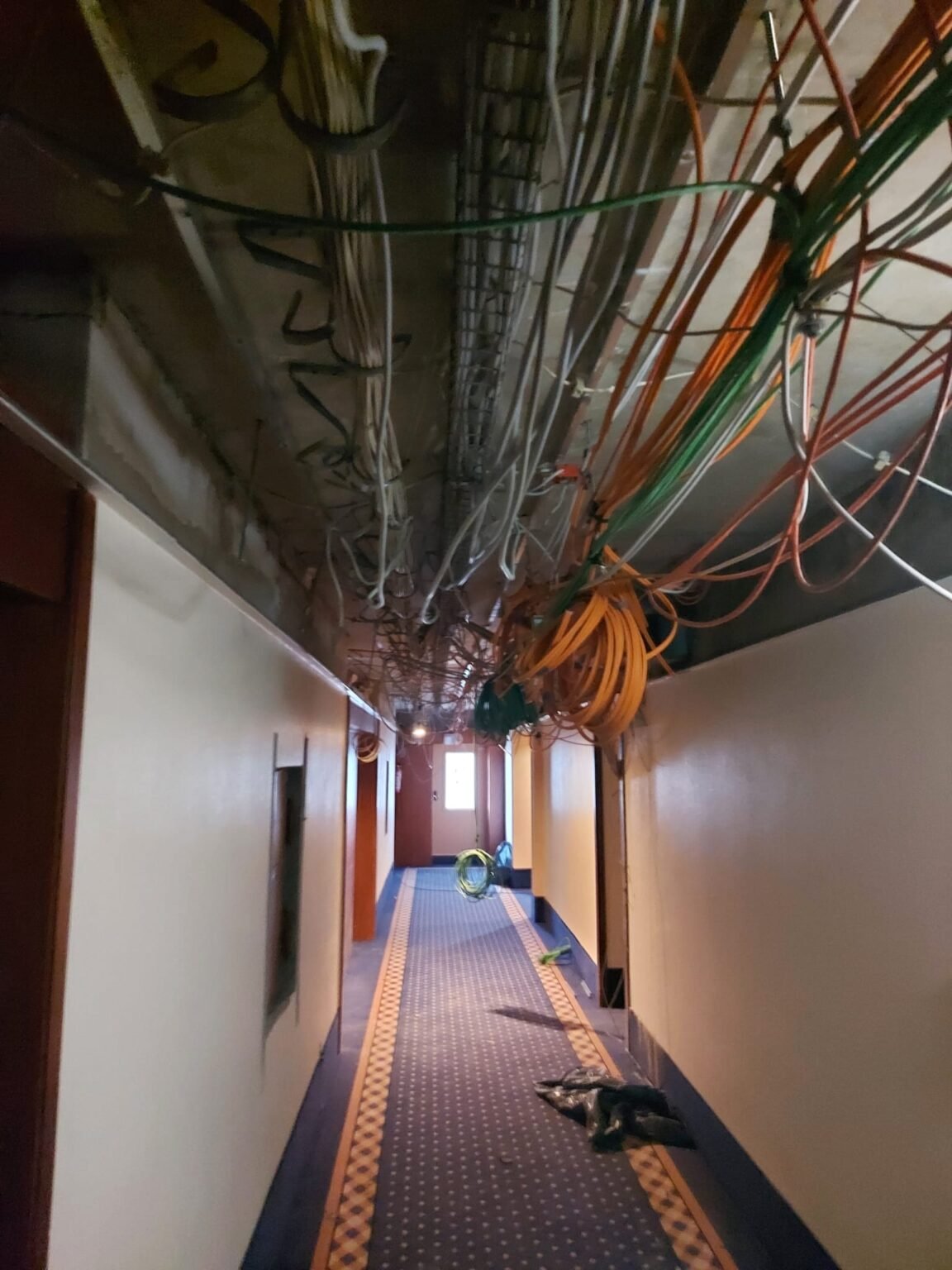 Pilna renovacija – 5 aukštai, 191 kambarys, koridoriai, baseino zona, bendrosios erdvės, techniniai darbai (elektra, apšvietimas, ventiliacija).